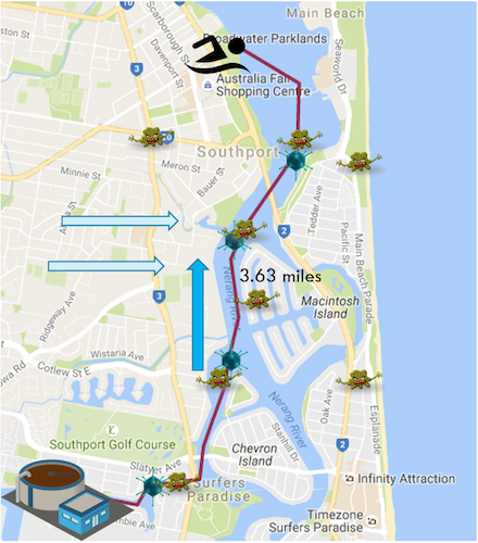 Figure 1. Potential sources of pathogen contamination impacting the Gold Coast Broadwater swim location