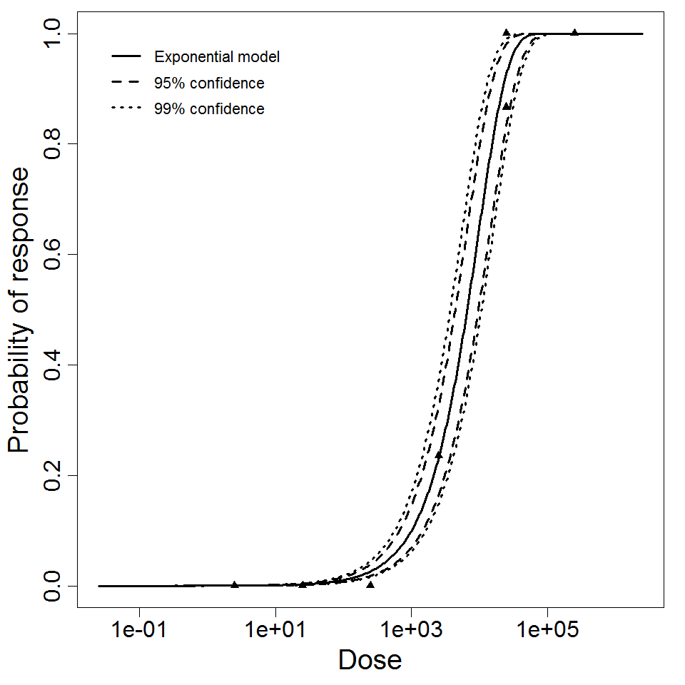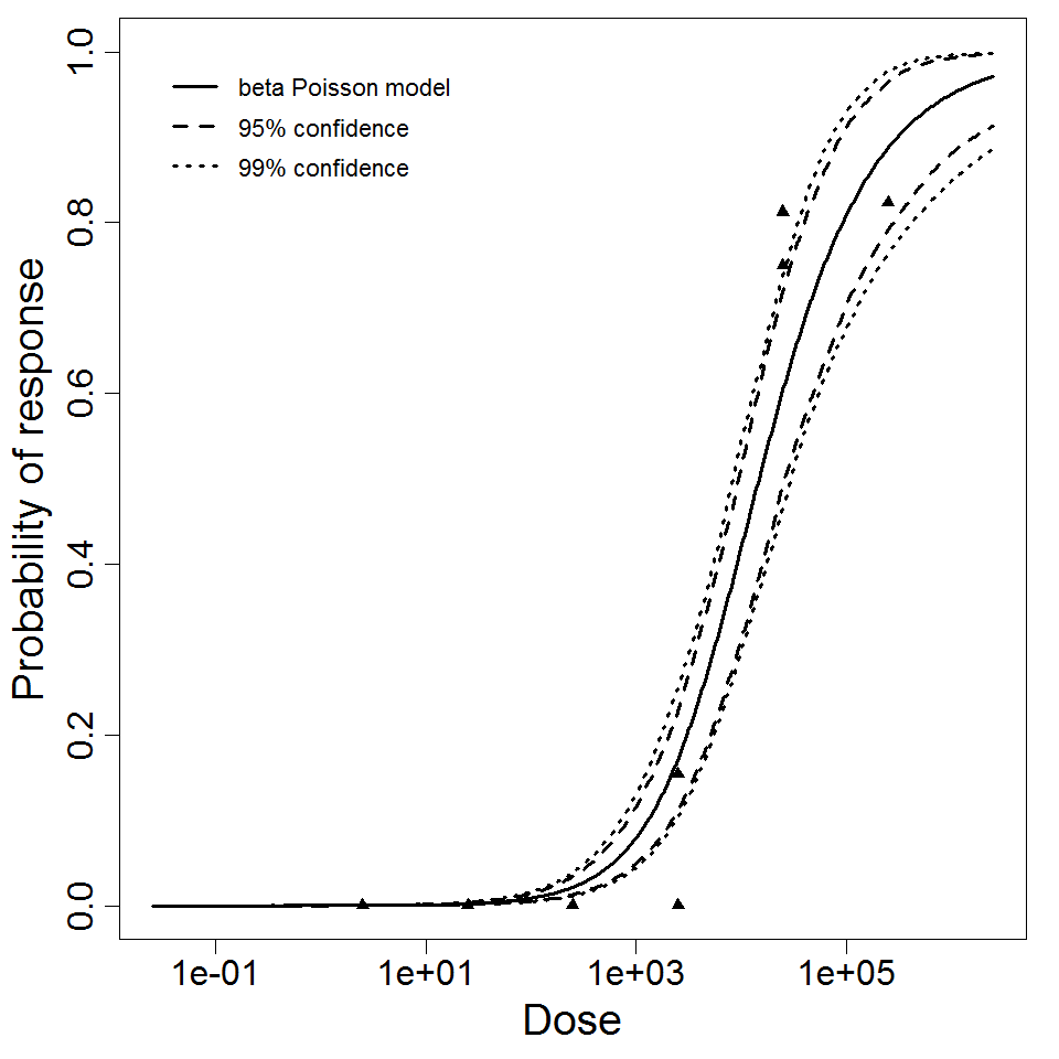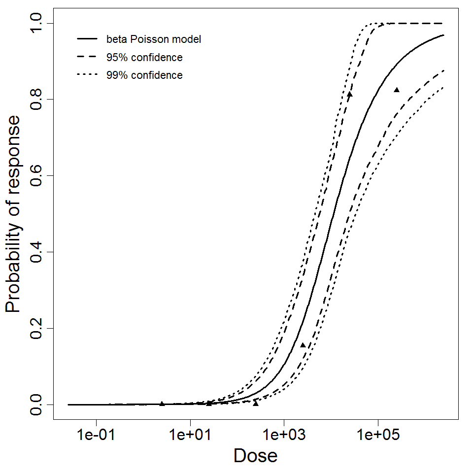 beta Poisson model plot, with confidence bounds around optimized model